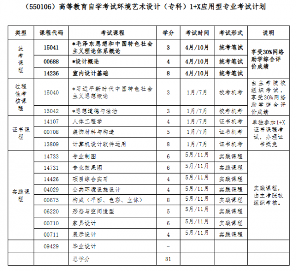 根据甘肃省高等教育自学考试委员会印发《关于兰州城市学院开展甘肃省高乖教育自学考试环境艺术设计(专科)、环境设计(专升本)专业“学历证书+若干职业技能等级证书”项目试点工作的批复》(甘考委发【2025】6号)文件精神,应用型(1+X证书)环境艺术设计(专科)、环境设计(专升末)专业取得建筑装饰装修数字化设计职业技能等级(初级/中级)证书者,可申请免考指定课程,免考课程如下:
